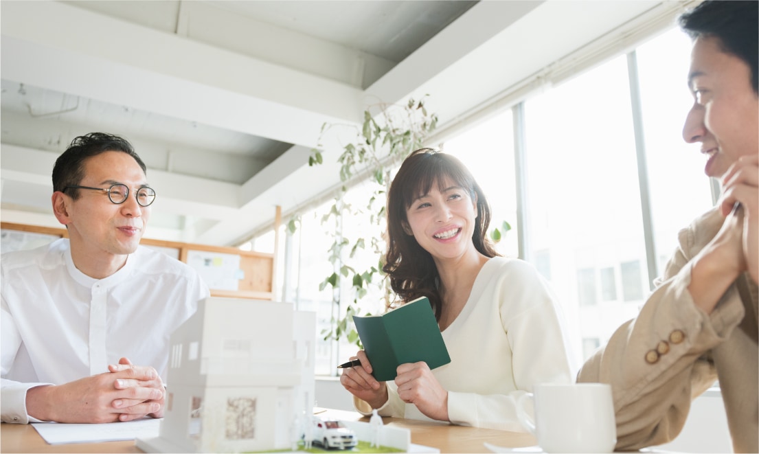 初回プランと見積りをご提案。ここから新居の大まかな輪郭をつくっていきます。お見積りに関する疑問点や要望なども、すべて建築士にお伝えください。