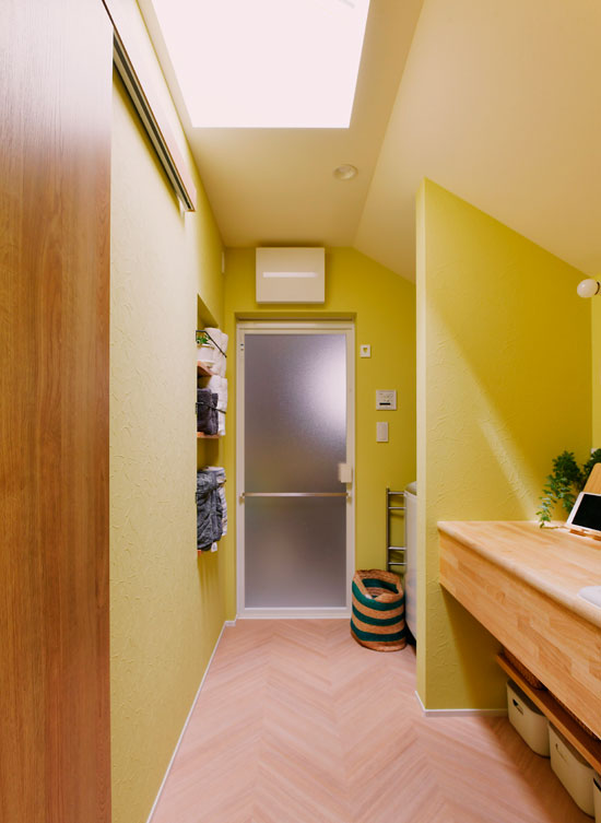 こちらのお住まいでは洗面室に天窓を設置することで、ジメジメしがちな空間を明るく保っています。