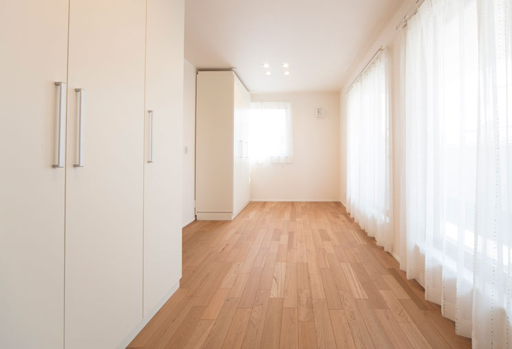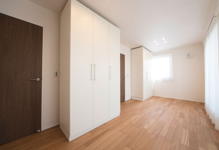 一般的な奥行きの壁面収納で、主に衣類や寝具などを収納します。