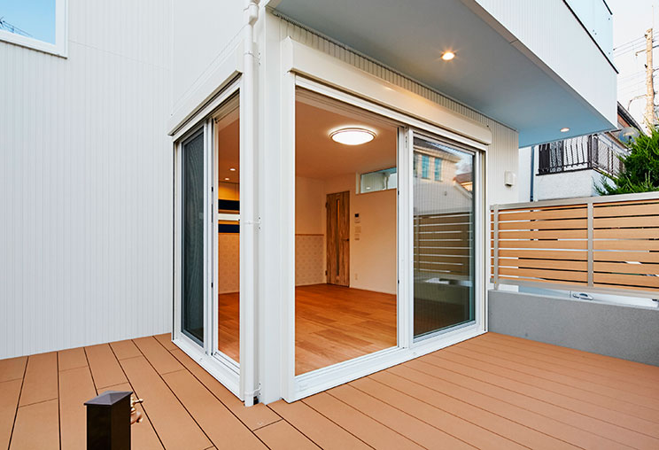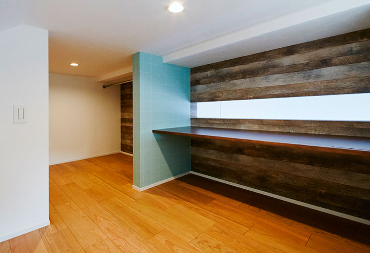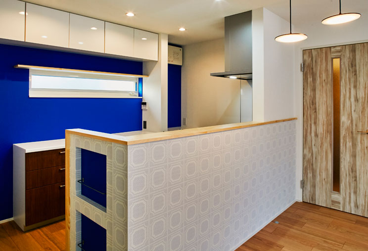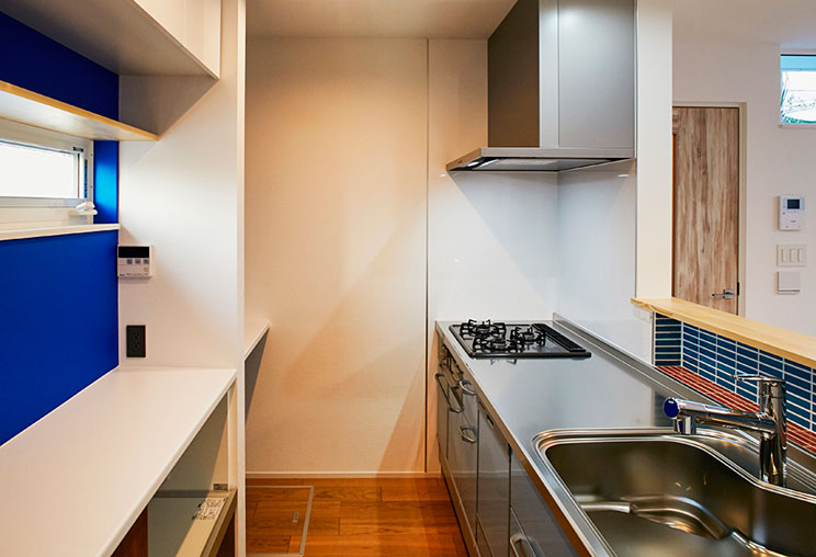 キッチンは好きな2色のタイルを組み合わせてデザイン。