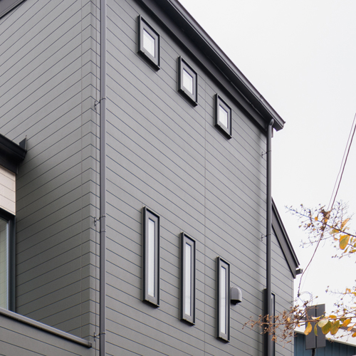 各階に設けた窓は、すべて位置をそろえて縦のラインを強調。鶴田さんによる、デザイン性と機能性を両立させるための提案だ。見た目の美しさはもちろん、夫人は「夏は窓を開けると、家の中に気持ちのいい風が通り抜けるんです」とその効果も実感している