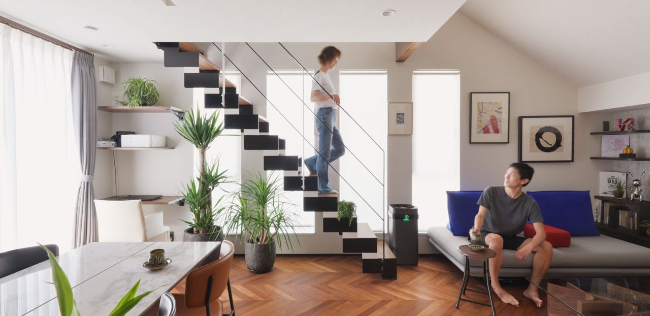 「できるだけ明るくしたいとお願いしたら、建築士さんが限界まで階段の壁をなくしてくれたんです。おかげで明るさも開放感も増しました」